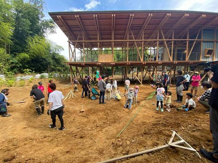 カフェやじゃぶじゃぶ池など、子どもたちが自然に来れる仕掛け作り。「縁側」でゆっくり。「老い」を子どもたちに伝えていく場所