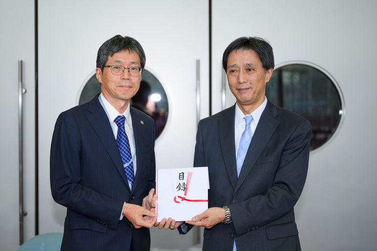 記者発表の最後には、寄付金贈呈式を執り行いました。