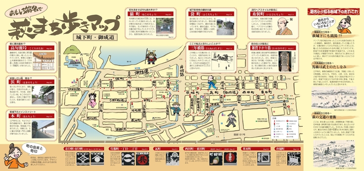 話し合いを重ねるうちに、萩城〜田町商店街に続く道は大名行列が通っていたことから、【お成通】という名前をつけ、訪れる人が楽しく回れる観光名所とするため萩ゆかりの偉人を記載したパネルを立てる活動を行なってまいりました。