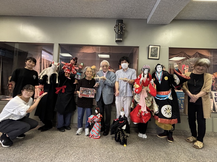 一糸座が伺うと、旅公演をご一緒した乙女文楽の皆さんが人形と共にお迎えくださいました。