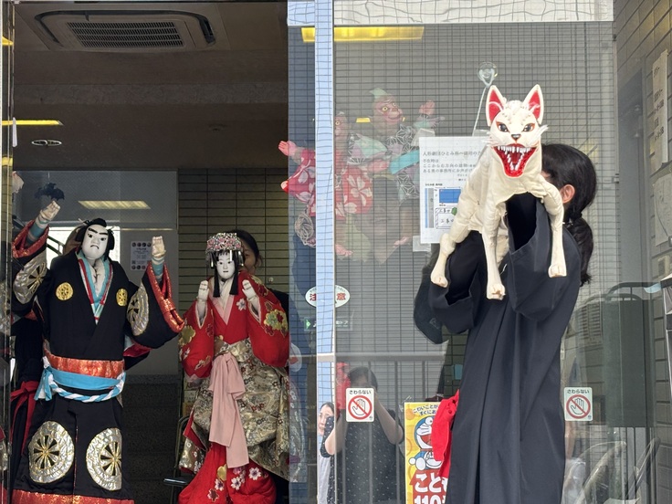 帰り際、自動ドア閉まるまでお見送りしてくれた人形達と人形遣いの皆さん!