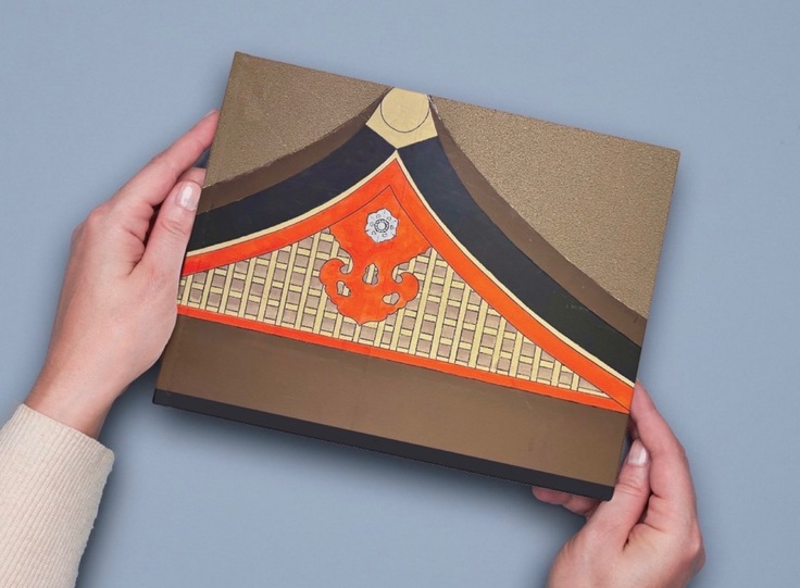 舞台美術の一部を、糸あやつり人形に欠かせない手板(コントローラー)と同じサイズの小さな絵画作品として表現しました。