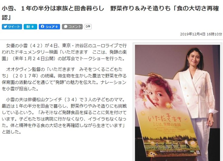 小雪さん自身が、育った環境では、毎日が玄米食だったこと。そして現在お子さんを育てる時に、1日2回のお味噌汁を作っていること(しかも手作り味噌で)。また今年から、地方へにも定期的に通いながら、ワークライフバランスを整えていることで、精神的なストレスが軽減されていること。
