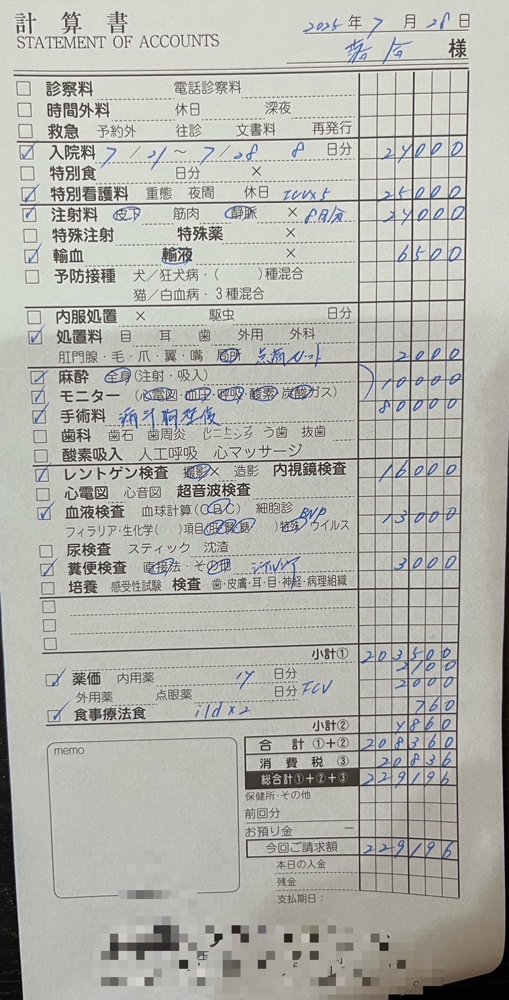 2025年7月21日に入院し、7月23日に1回目の手術を行いました。