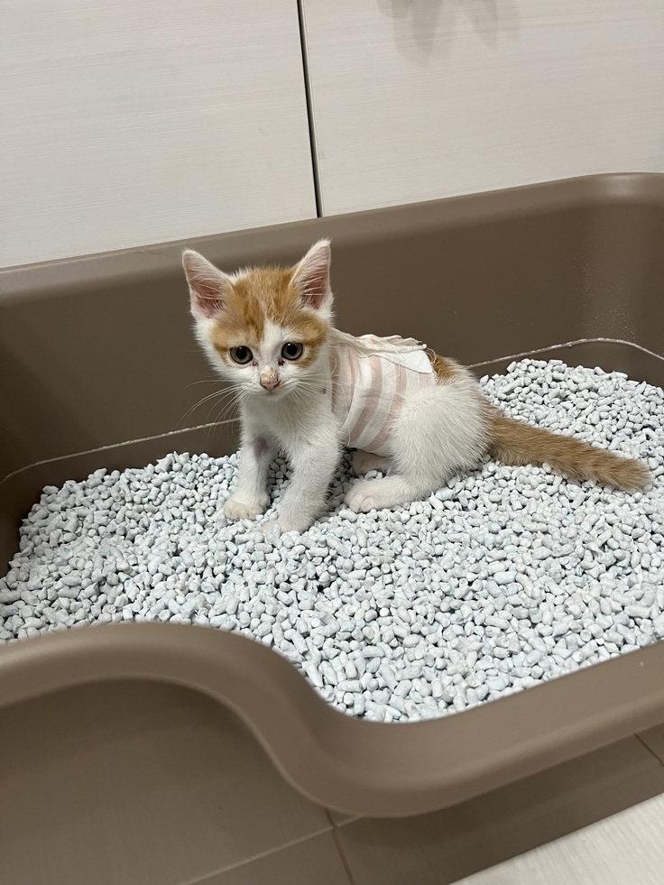 保護子猫の漏斗胸治療をしています。2025年7月23日に1回目の漏斗胸治療の手術を実施しました。いただいた支援金は動物病院に支払った自己資金の補填とクラウドファンティング手数料の一部に使用します。