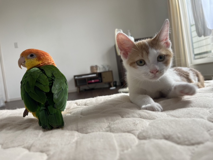 我が家の先住猫の末っ子1歳と一緒に夜中も元気に駆けずり回っています。