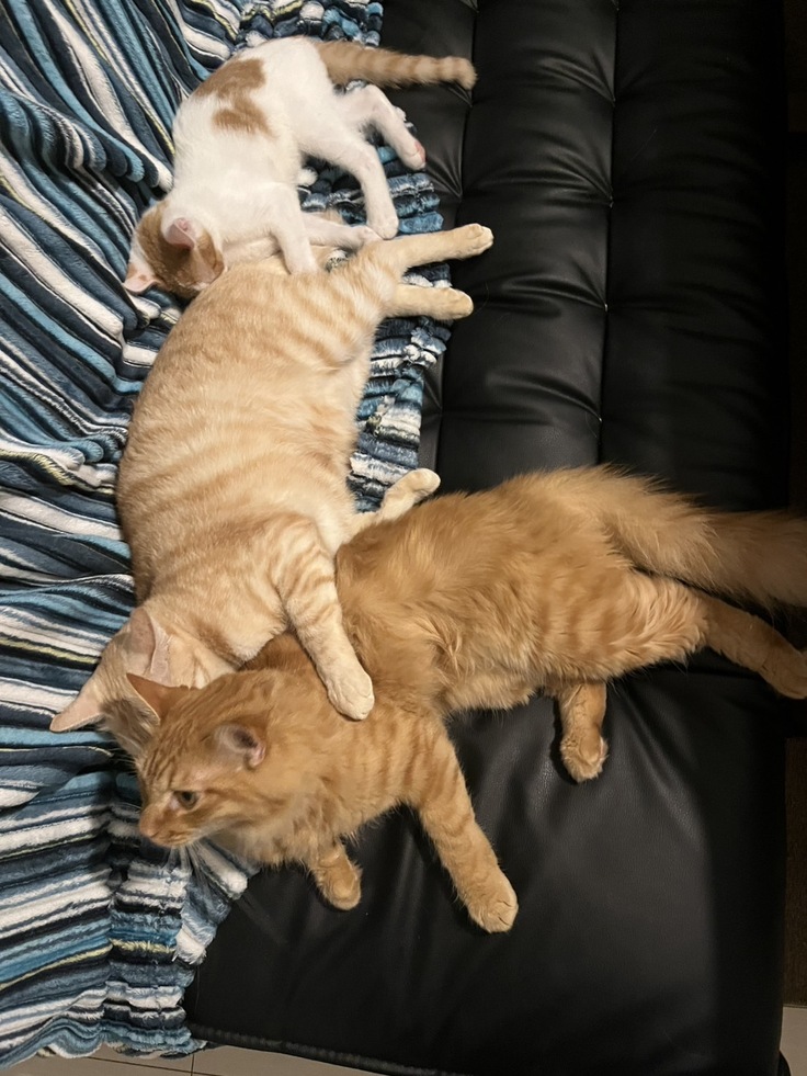 写真のリゼと我が家の猫2匹ですが全員野良猫出身です。