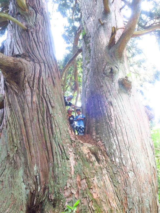 子供達が豆のように小さく見えます。とても立派なご神木です。)