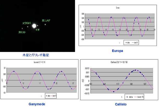 インターネット望遠鏡が完成したとき、私が最初に取り組んだ観測課題は上で述べたガリレオ衛星の継続観測でした。1ヶ月余りの観測で、ガリレオ衛星の運動に関してケプラーの第3法則が確かに成り立つことを確かました。それ以前には、理論的にケプラーの法則を導いたことはありますが、実際に観測でこの課題に取り組んだことはありません。それだけに、天体観測に関してはほとんど経験のない私が、自分の取ったデータで天文学の基本的な法則を検証することができたことは大きな驚きでした。大変貴重な体験でありまた大きな感動でした。それはまた、インターネット望遠鏡ネットワークの有効性を確信させるものでもあります。多くの人々にこの感動を味わってもらいたいという願いが、いろいろな困難を抱えながらもこの10数年間、インターネット望プロジェクトへの取り組みを続けさせているパトスとなっています。