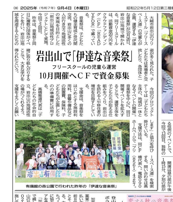 9月4日(木)の大崎タイムスに、今回のクラウドファンディングの記事が掲載されました。