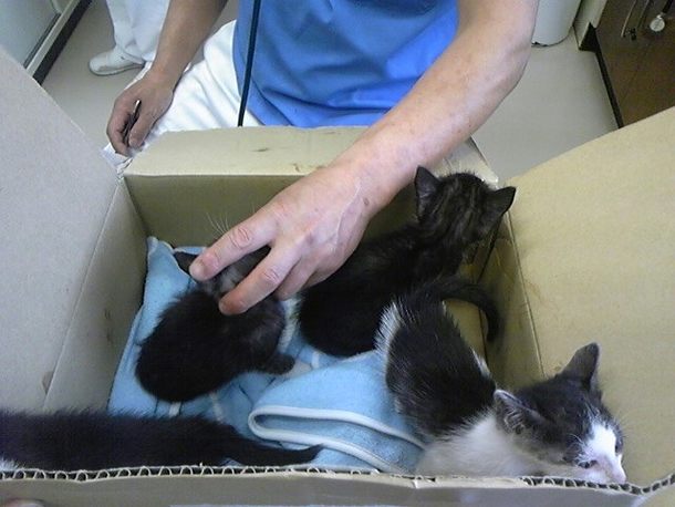 見捨てることができず、とりあえず段ボールに入れて動物病院に行きました。