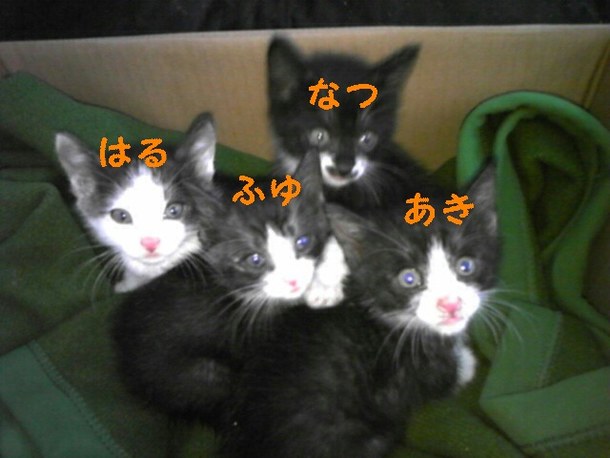 4匹だったので はる、なつ、あき、ふゆと、ベタな名前をつけて、4匹には無事に里親さんがみつかりました。