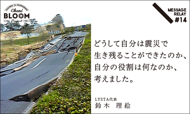 第14回目の『メッセージリレー』は、LYSTA代表・鈴木理絵さんの第3弾です。