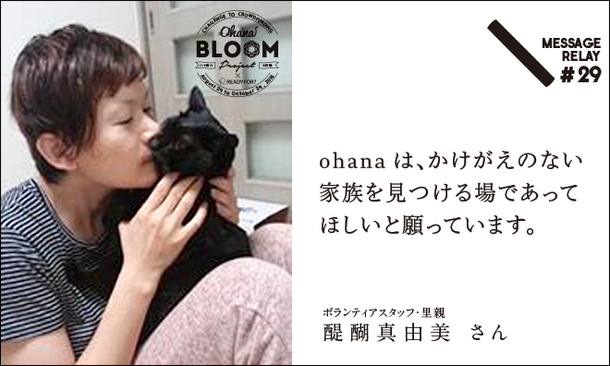 第29回目の『メッセージリレー』は、ボランティアスタッフでもあり里親でもある、醍醐真由美さんです。