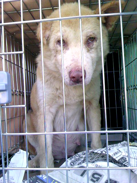 のびたくんも犬の捕獲器に入った子です。震災前から野良生活だったのか、わかりませんが、