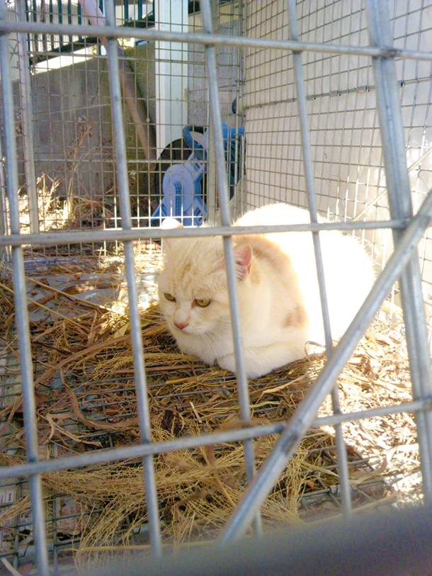 震災と原発事故から一年が過ぎた2012年5月、捕獲器に入って