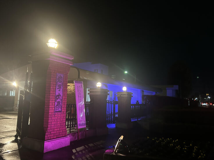 本学でのパープル・ライトアップは今年で3回目。今回は11月16日(土)までの予定です。