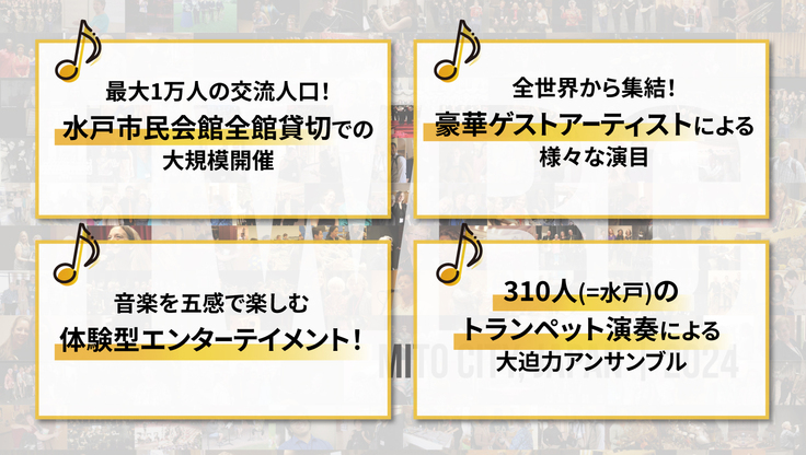 開催地である水戸にちなんで、310人のトランペット奏者による演奏を行います。