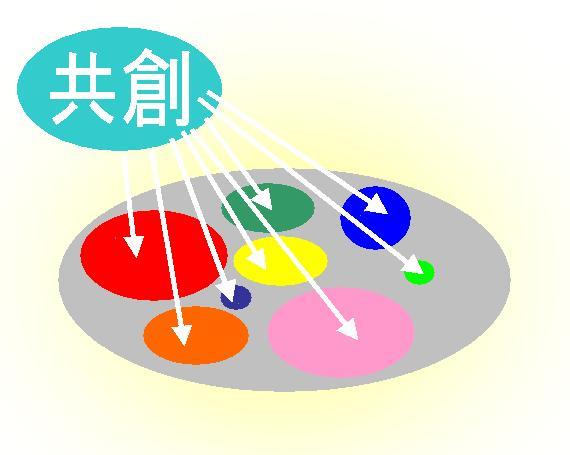 上記の共創の図は、カラーセラピー業界だけでなく、