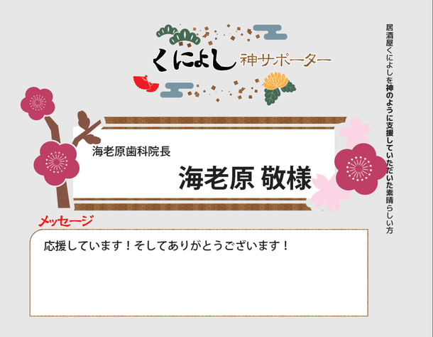 ・サポーターとして店内やHPにお名前掲載(小サイズ)