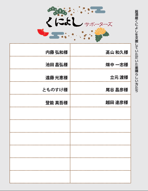 <最新サポーターズリスト>(店内とくによしHPに掲載しています)