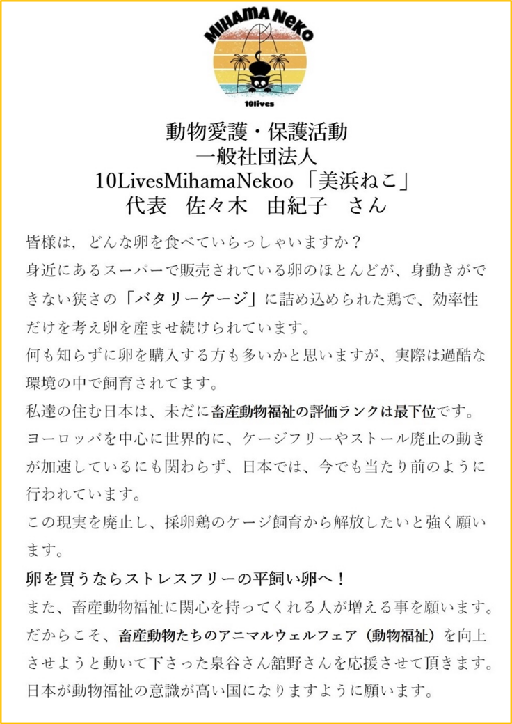 このプロジェクトを通じて鶏たちの幸せと地域社会への貢献を実現して、『命の大切さ』や『本来の日本』を取り戻すためにこの考え方や価値観を広めていくことが、私達の使命でもあります!ゆくゆくは鶏にとどまらず!
