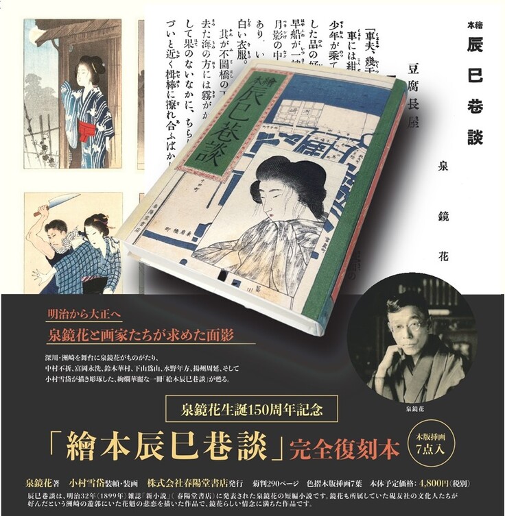 中村不折、富岡永洗、鈴木華村、下村爲山、水野年方、揚州周延といった名だたる画家たちによる巻頭挿絵を、小村雪岱が着色した『繪本辰巳巷談』は、芸術的にも高い評価を得ています。泉鏡花の生誕150年という節目に、このような歴史的価値の高い書籍を再び世に送り出すことは、春陽堂書店の使命であると考えています。