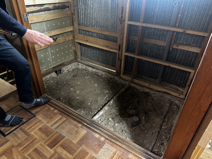 もともと和式と男性用のトイレが並んできたのですが、それらが解体され、新しい様式トイレの準備が進んでいます。