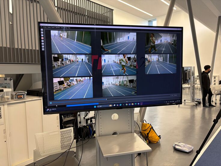 体験では、モーションキャプチャーシステムでランニングデータを取得いただき、各選手の走りの特徴を分析してもらいました。