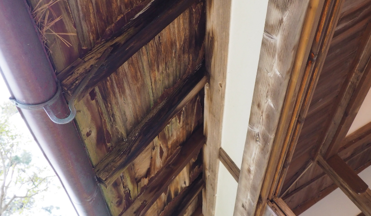 5年ほど前に屋根の葺き替えを行いましたが、実はその際に予算を半分ほどしか調達できず、屋根の内部の補修が十分でなかったこともあいまって、現在すでに一部が雨漏りをしている状況です。