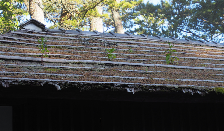 しかし、海に面した立地のため塩害が深刻化し、施設の傷みも早く、植物の育成についても難しい環境です。特に登録有形文化財・長屋門の杉皮屋根は雨漏りが深刻化し、建物全体の存続が危ぶまれる状況です。