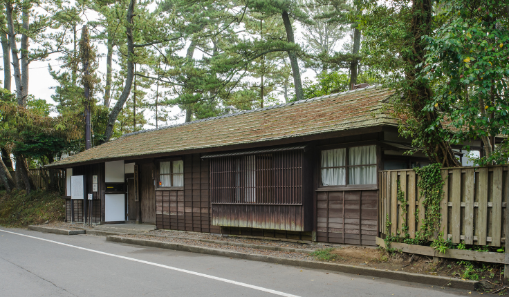 茨城大学五浦美術文化研究所は、当時天心偉績顕彰会の理事長だった横山大観から、これら天心遺跡の寄贈の申し出を受けて、1955(昭和30)年に設立されました。敷地全体と隣接する海岸を含めて登録記念物(名勝地関係、遺跡関係)に指定されており、中でも「天心邸(岡倉天心旧居(研究室))」、「長屋門(管理舎・陳列館)」は登録有形文化財(建造物)に指定されています。