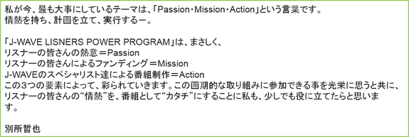 *続けて、番組ナビゲーター・別所哲也さんからのメッセ―ジのご紹介*