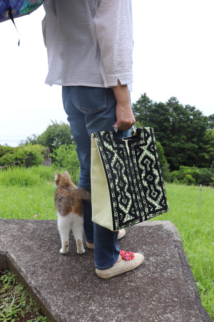 室内でも撮ってみたものの、やはり緑と海がバックにある外の方が刺繍も綺麗に見えるので、外で撮影することに。こう持ったらいいのではなどアングルも考えながらだったため、毎日少しずつ撮っていました。あと少しで撮り終わると思っていたのですが、家に帰ってパソコンで見てみると、いくつかブレている写真を発見><はぁ・・・せっかく撮ったのに、撮り直し。