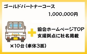 ■ 100万円|支援車両5台+ホームページ、支援拠点にお名前掲示コース