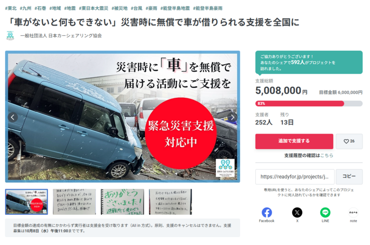 明日の災害に備える仕組みにご支援を|カーシェアサポーター募集