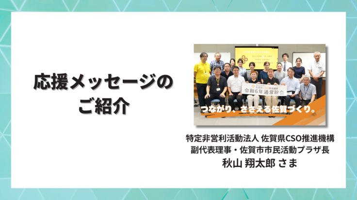 佐賀県CSO推進機構 副代表理事 秋山 翔太郎さまより応援メッセージをいただきました!