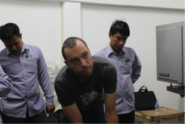 完成披露試写会に向け、今まさに準備中。会場は、ラオス情報文化観光省シネマ局付属シアター(ラオス政府所有)です。