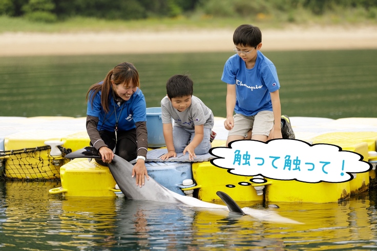 さっき聞いたイルカの体の仕組みも思い出しながら、触ったりごはんをあげよう!