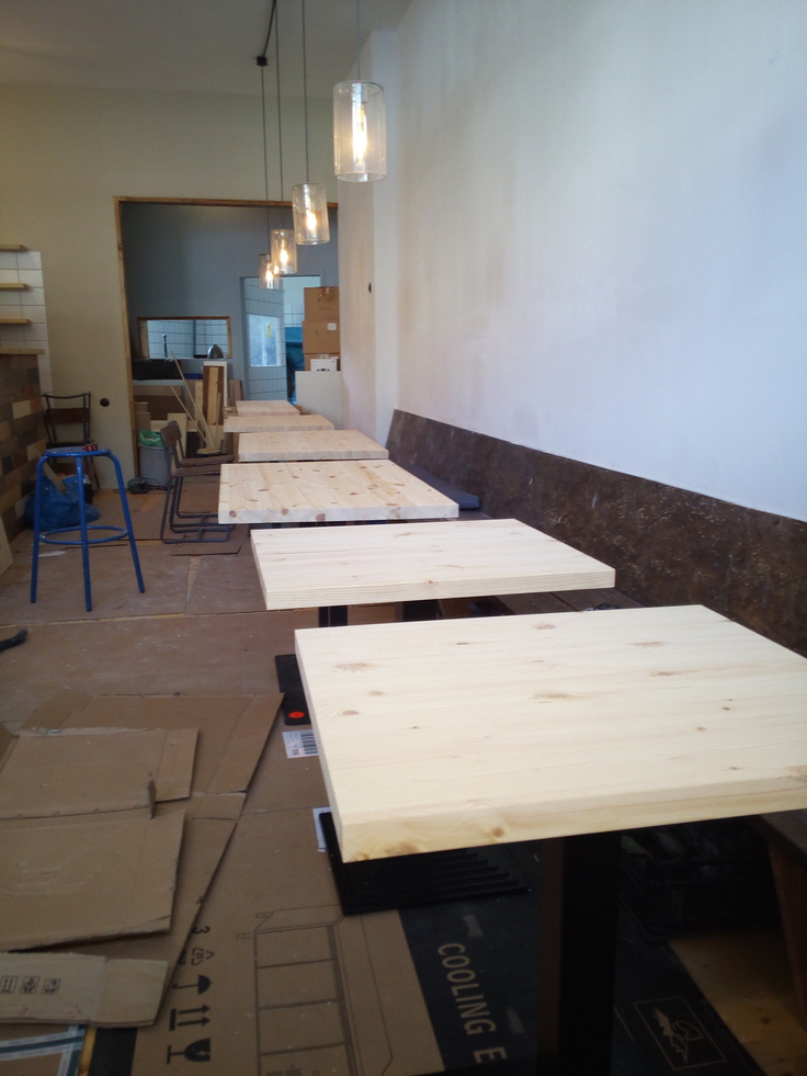 ということで、お客様がお食事をするテーブルも自分たちで作成しました。