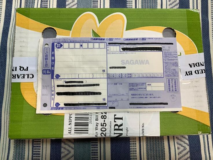 ●インドでの輸出手続きが開始後、こちらのサイトでリターン品発送の予定日や発送完了などを随時お知らせします。成田空港で通関後、私が責任を持って国内配送の手配を致します。