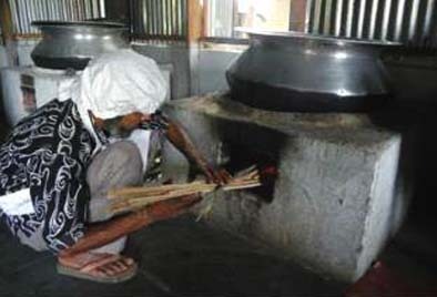 (給食室。調理は電気ガス水道がなくても従来の方法で衛生的に行います。)