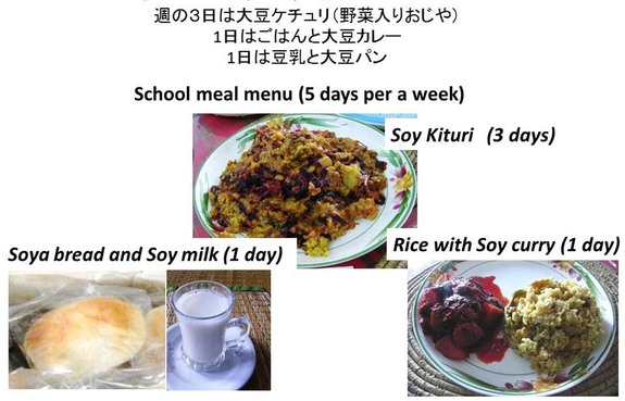 そこで、子供たちの健康のために、2010年より学校給食をスタート。高価な肉、魚、卵に代わって地元農家が作った「大豆」をメニューに取り入れた、大豆入り学校給食を開始しました。