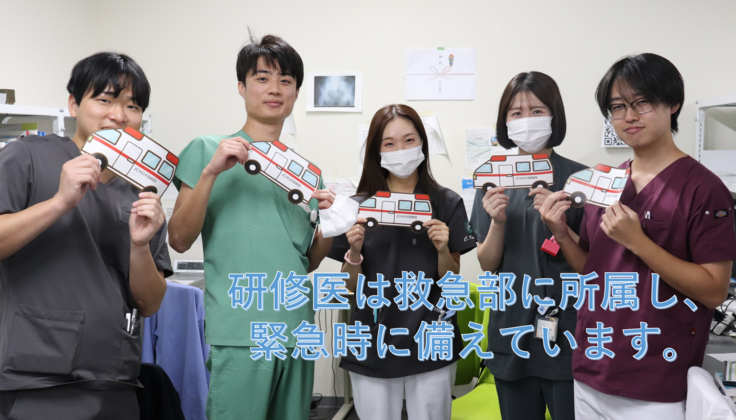 ♬研修医からメッセージ♬ 救急部が私達の主な研修の場所です。忙しくても頑張ってます。