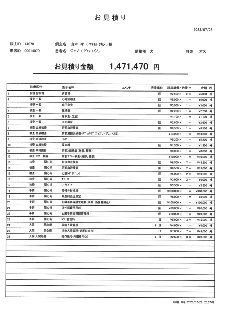 ご支援いただいた金額は、全てジェノの治療費に充当させていだだきます。