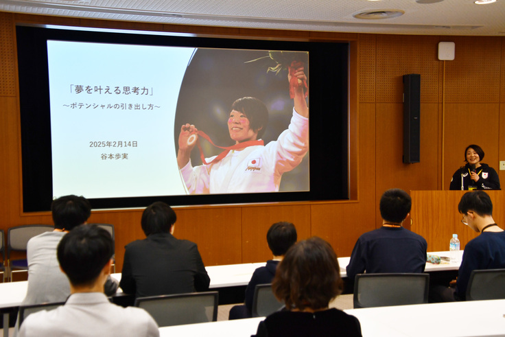 谷本歩実さんをお迎えし、「勝負の心構え」についての講話をいただきました。