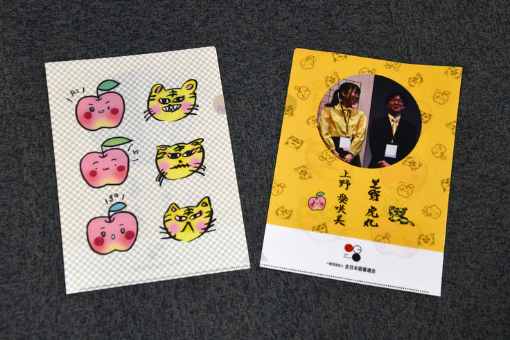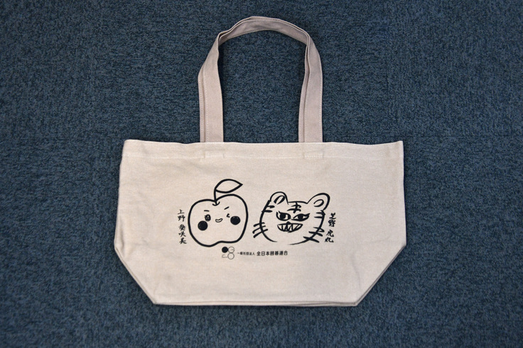 「虎」と「りんご」のイラストをプリントした特製グッズを制作しました。