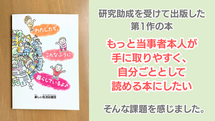 2022年、このグループで、じぶんぐらしをしている3人の方を紹介する本を、研究助成を受けて出版しました。1000冊を関係各者にお届けし、感想をお聞きしました。よい本ができたのですが、改善したい点もいくつかありました。