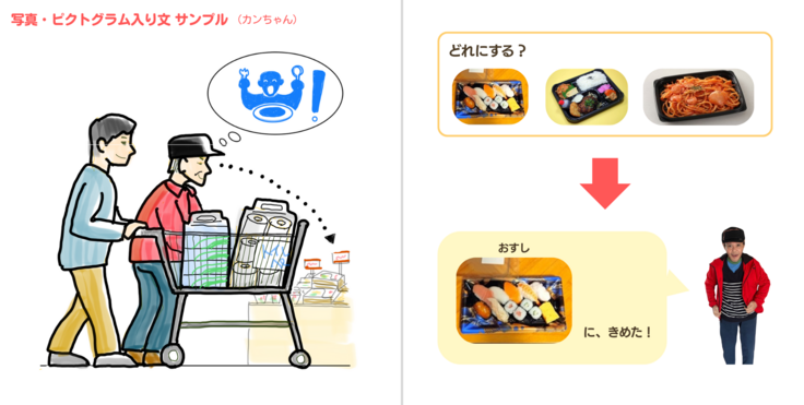 ↑どんな生活をしているかをシンプルな文章とイラストでわかりやすく伝えます。