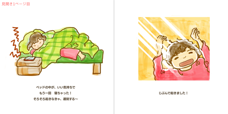 ▽制作中の絵本(ひーやんvr)のページサンプル
